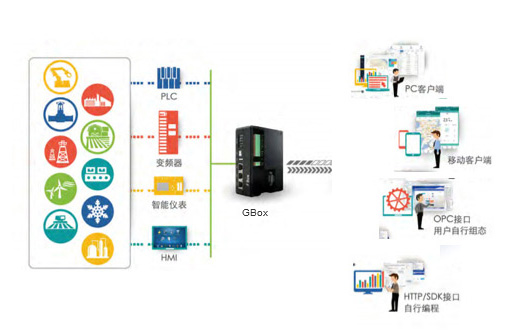 包含大量設備驅動和協議轉換,使用者不用了解具體協議內容和細節,直接將數據推送至互聯網中,IT人員直接使用,無需自動化基礎。