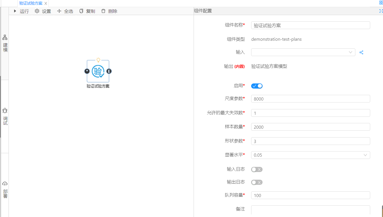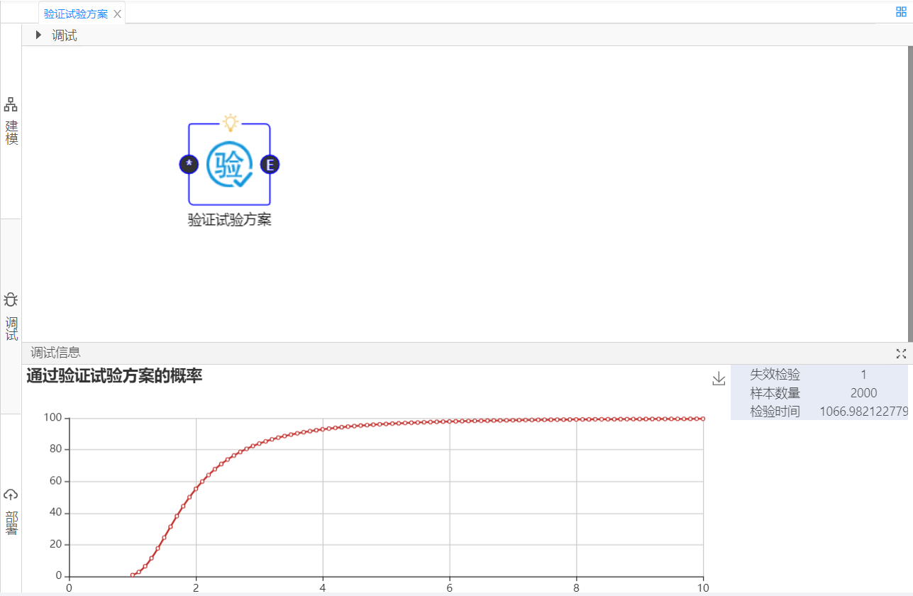 單擊該組件,右側(cè)會(huì)出現(xiàn)【組件配置】操作面板,進(jìn)行一系列參數(shù)配置:將尺度參數(shù)設(shè)置為8000,允許最大失效數(shù)設(shè)置為1,樣本數(shù)量設(shè)置為2000,形狀參數(shù)設(shè)置為3,顯著性水平選擇0.05,單擊運(yùn)行,從調(diào)試面板中查看分析結(jié)果。
