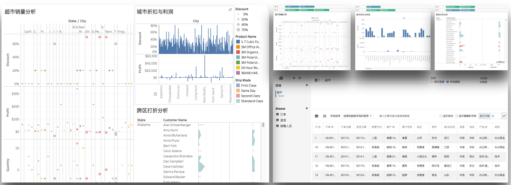 數據分析工作最初總是從準備數據開始,連接到任意的數據源(如:文件、數據庫等)是第一步,分析是動態的,分析的過程不能靠內置規則模型來完成,需要伴隨思考過程自然的完成分析。每一步操作都應產生一個新的可視化呈現,這樣的呈現是基于增量的分析,分析的結果會在制作報表時被引用。
