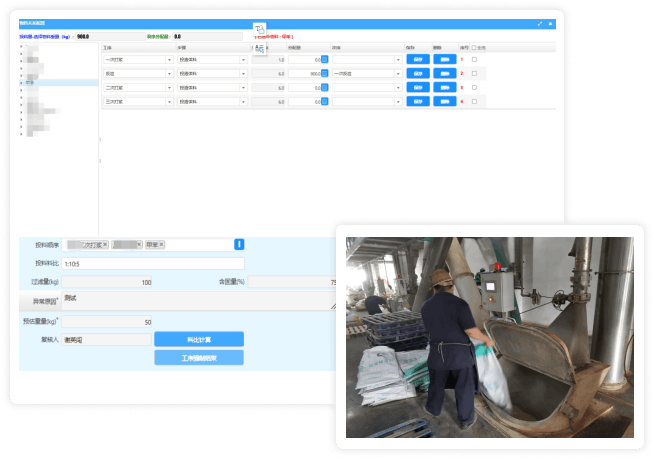 料比計算:根據客戶計算規則及實際物料量,一鍵完成工單投    料料量計算。 有效防止人為計算錯誤,規避生產事故風險。